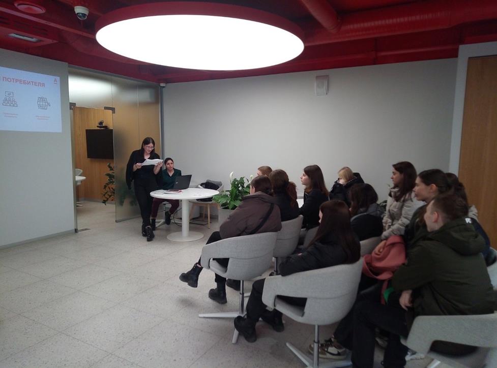 В процессе общения обучающимся рассказали об особенностях банковской деятельности и основах финансовой грамотности. Также такие встречи помогают студентам не только больше узнать о профессии работника банка, но и получить знания, которые пригодятся им как в жизни, так и в учебе. Далее прошла экскурсия по phygital-офису и знакомство с профессией банковского работника.