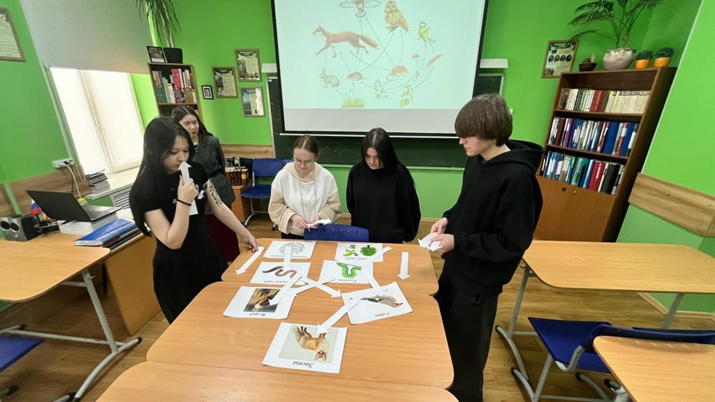 Студентам дали семь организмов и предложили с помощью стрелок создать пищевую схему. Задание помогло закрепить знания о взаимосвязях в экосистемах и роли разных видов в природе.