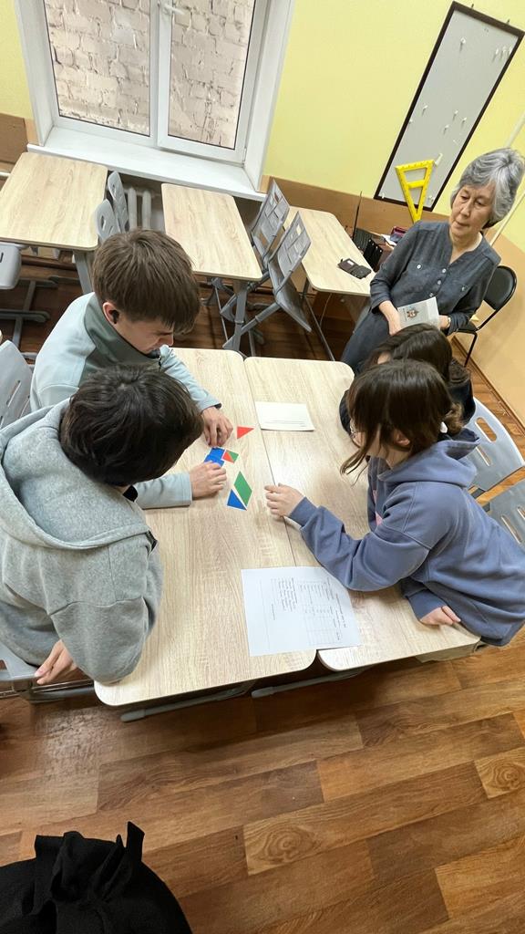 Участникам предстояло собрать квадрат из семи геометрических фигур: двух квадратов, четырёх треугольников и параллелограмма. Это задание требовало пространственного мышления и логики, напоминая о классических математических задачах древности.