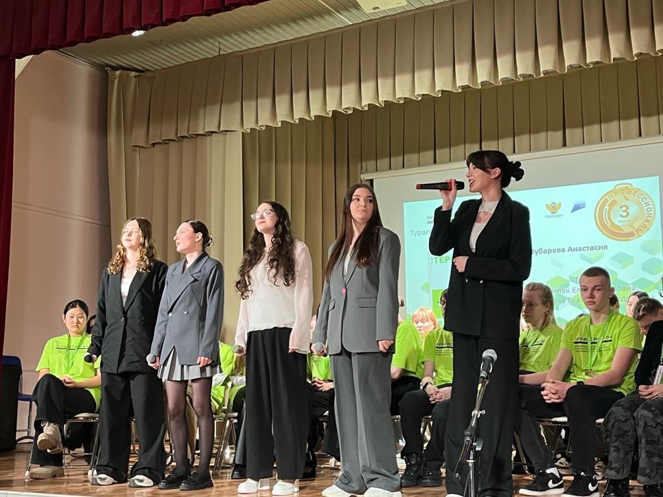 Специальный гость — Аптрасакова Зухра — Финалист Национального Чемпионата по профессиональному мастерству «Профессионалы»-2024 (тренер — Сергеева Наталья Владимировна) обратилась к присутствующим со словами поддержки и напутствием опытного участника всех этапов чемпионата.