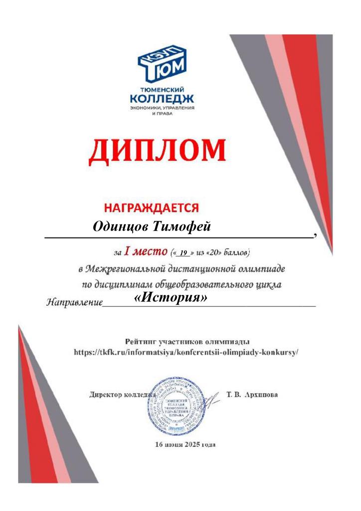 С 12 мая по 31 мая 2025 года проходила Межрегиональная дистанционная олимпиада по дисциплинам общеобразовательного цикла с целью выявления одаренных и талантливых обучающихся, реализации творческого потенциала и повышения мотивации к обучению.