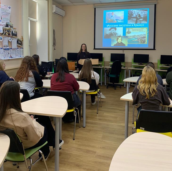 С 17 по 19 марта студенты групп ТГ-25-24б, БН-25-25, ТД-25-21, ЮР-25-06, СТР-23-04 посетили библиотечные часы, посвященные творчеству известных русских литераторов, связанных с полуостровом под названием: «Русские писатели в Крыму».