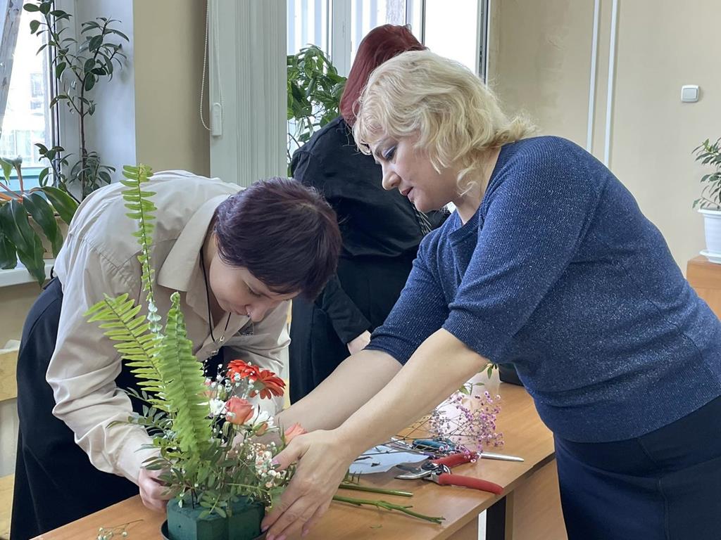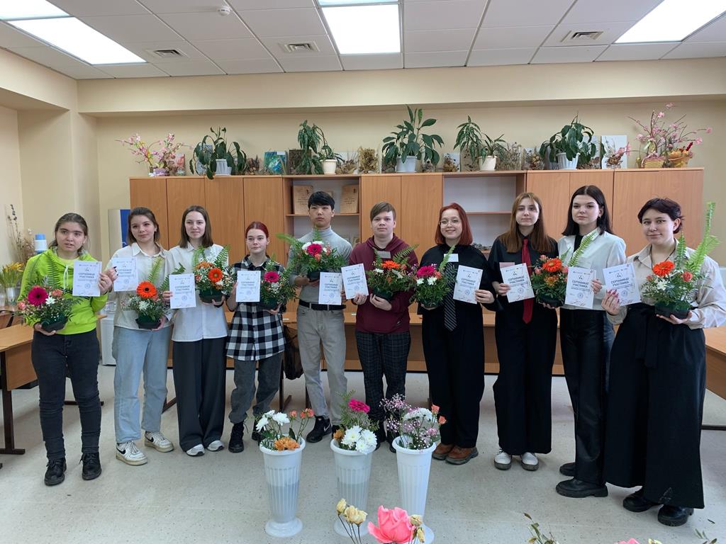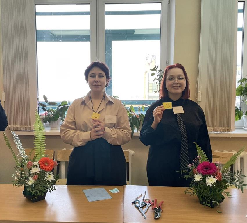 «Флористика» – студенты выполняли композиции на оазисе из живых цветов, узнали названия декоративных цветов, ознакомились с правилами составления флористической композиции.