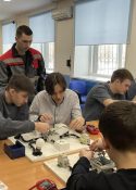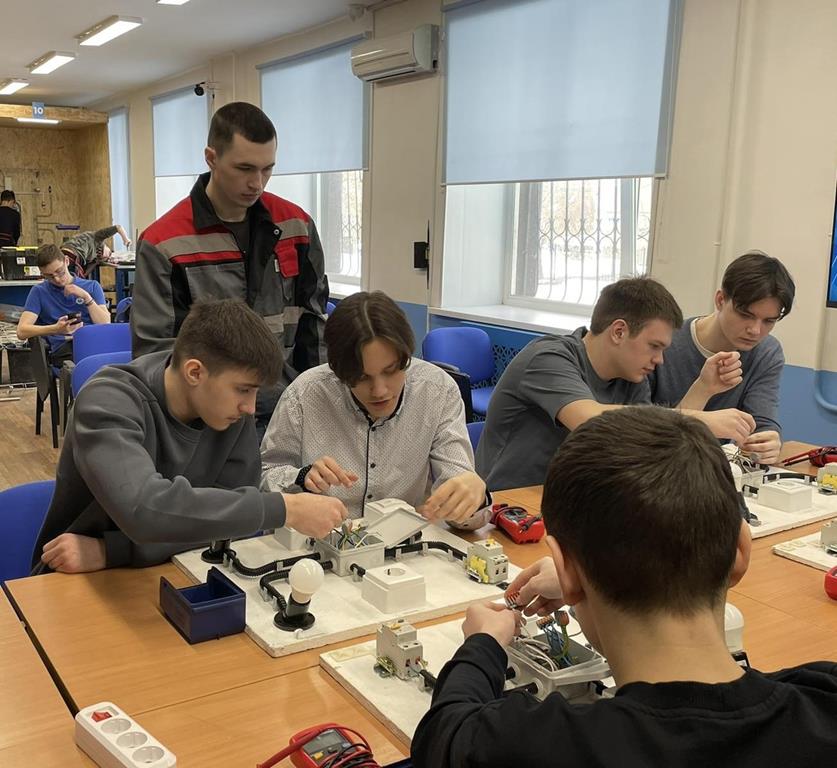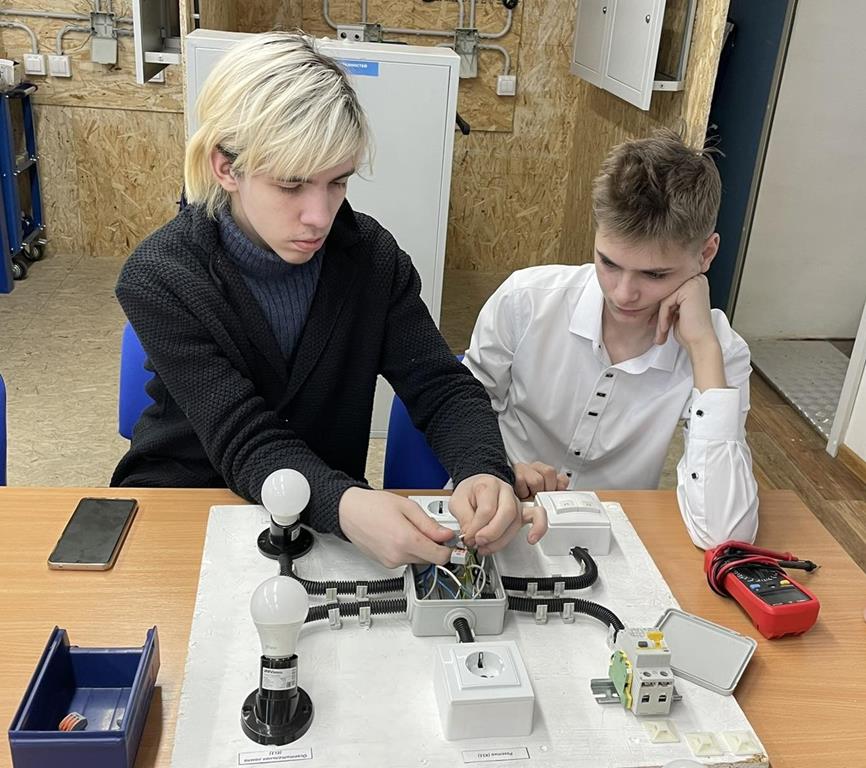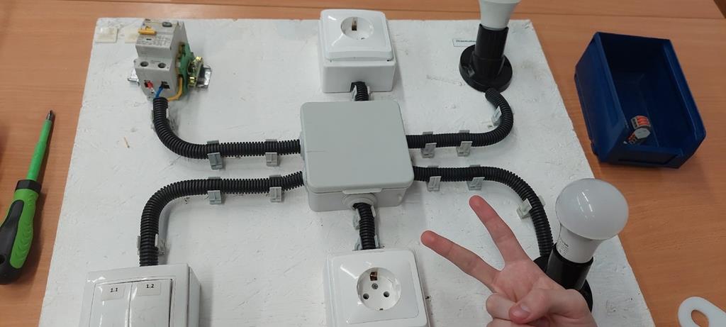 «Электромонтаж» — ребят познакомили с основами коммутации распределительных коробок, обучающиеся выполнили коммутацию проводников для розеток и двухклавишного выключателя с лампами освещения.