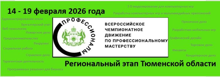 С 14 по 19 февраля в Тюменской области будет проходить региональный этап Всероссийского чемпионатного движения «Профессионалы». Чем ближе чемпионат, тем … Читать далее Старт «Профессионалов» все ближе!