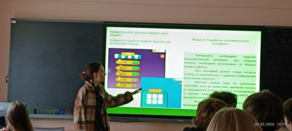Зотова Екатерина Сергеевна ознакомила обучающихся групп ИП-25-13б и ИБ-25-14б с такими компетенциями как Разработчик мобильных игр (тренер Оноприйчук Д.А.), Разработка компьютерных игр и мультимедийных приложений (тренер Тетерина М.В.), Графический дизайн (тренер Зотова Е.С.) и 3 D моделирование для компьютерных игр (тренер Полторацкий В.Е.).