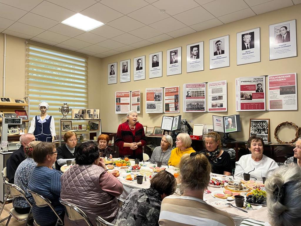 Торжественная встреча состоялась в музее колледжа, который в этот день стал не просто местом памяти, а пространством для живого общения. Гости с удовольствием рассматривали фотографии прошлых лет, с теплотой и ностальгией узнавая на снимках себя и своих коллег.