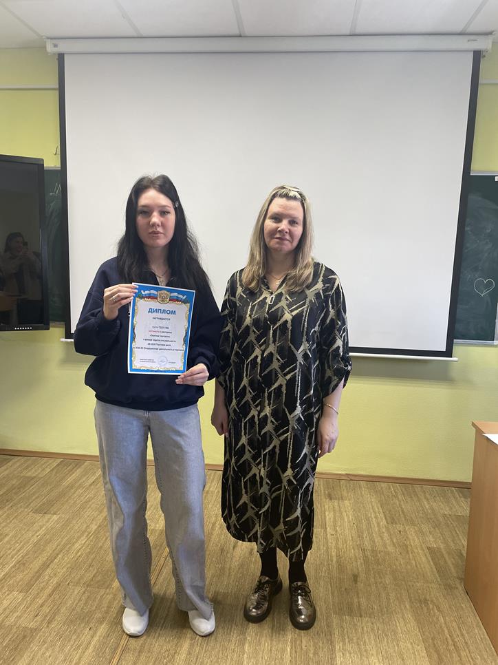 3 место — разделили студентки группы ТД-25-21б Аксарина Алёна и Зюляркина София группы ОПД-24-01 .