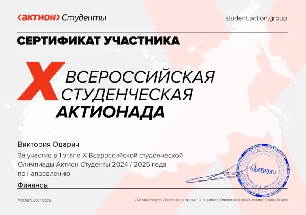 Всероссийская студенческая Актионада 24/25 по направлению «Финансы» для студентов специальности Банковское дело